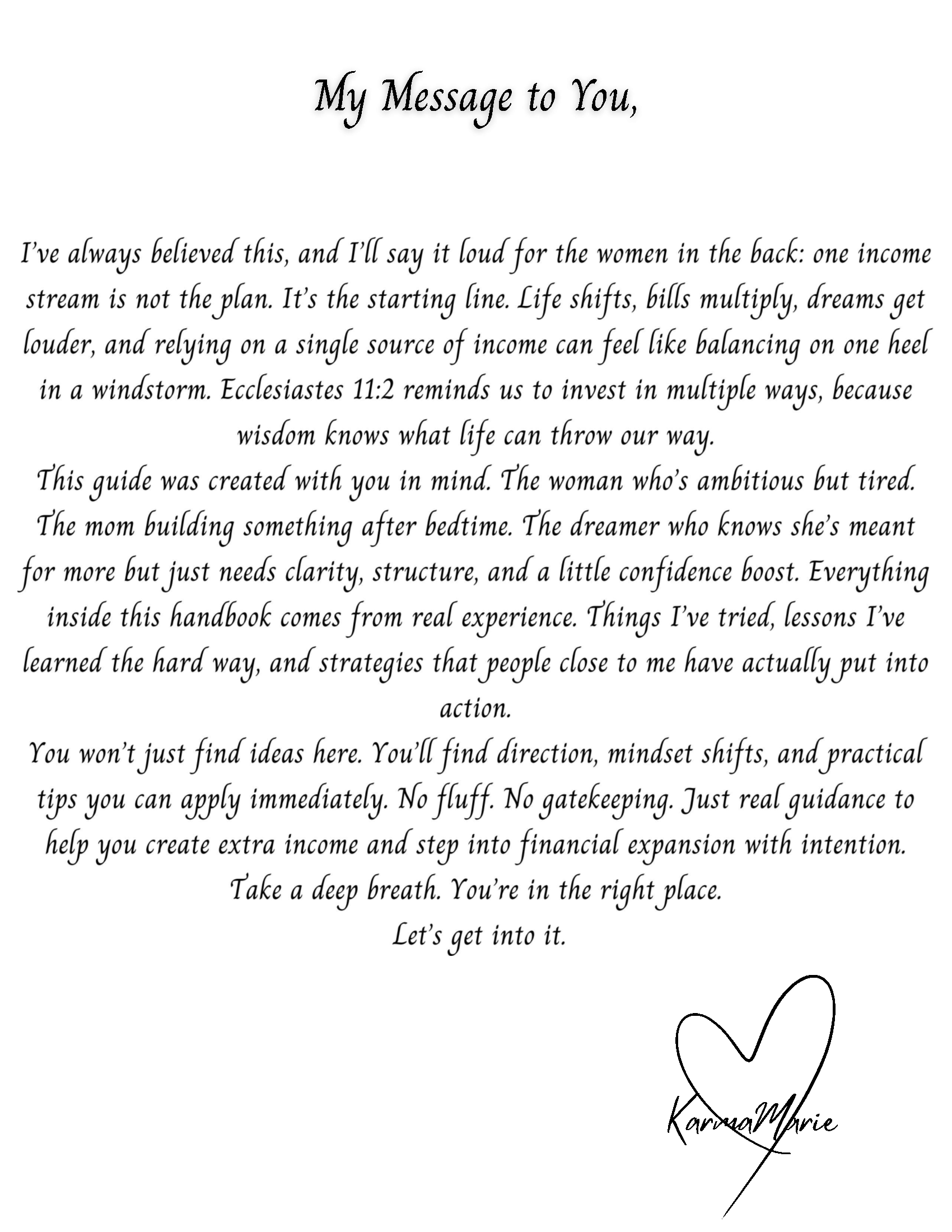 If you’re ready to stop doubting yourself and start taking aligned action toward additional income, this handbook meets you exactly where you are and pushes you forward.
